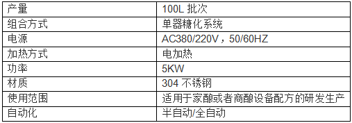100L家釀系統參數: