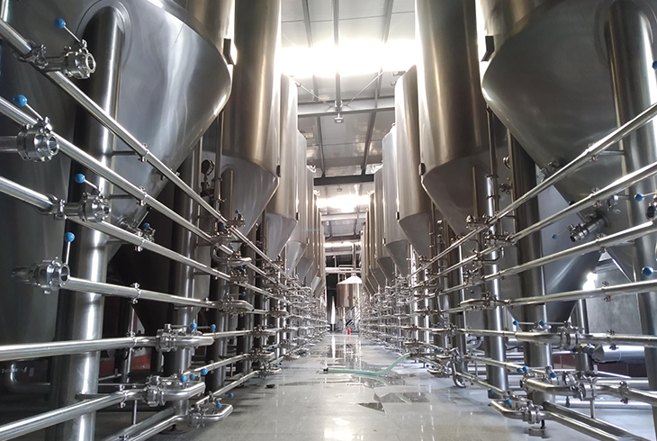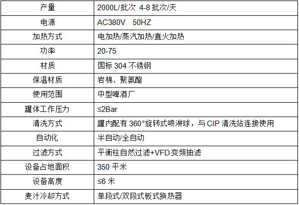 5000L釀造系統主要組成:對輥粉碎機+麥芽輸送裝置+糖化罐+過(guò)濾槽+煮沸旋沉槽+熱水罐+冷水罐+冰水罐+制冷機組+發(fā)酵罐+控制柜+CIP清洗系統+304不銹鋼輸送管道+全不銹鋼平臺+配套304不銹鋼氣動(dòng)蝶閥和管件+換熱器.