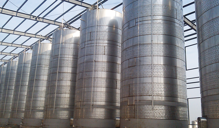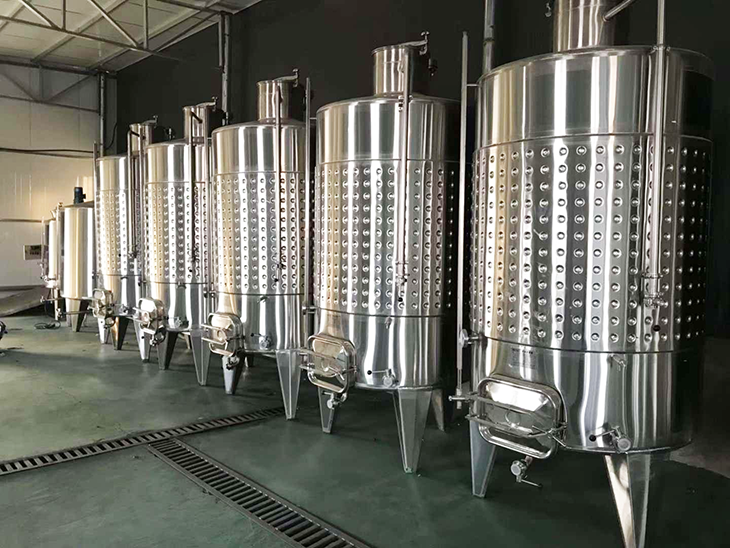 果酒發(fā)酵罐內外均采用304不銹鋼材質(zhì),罐體內壁拋光精度≤0.6um,外包米勒板夾套,用于罐體內物料的換熱。